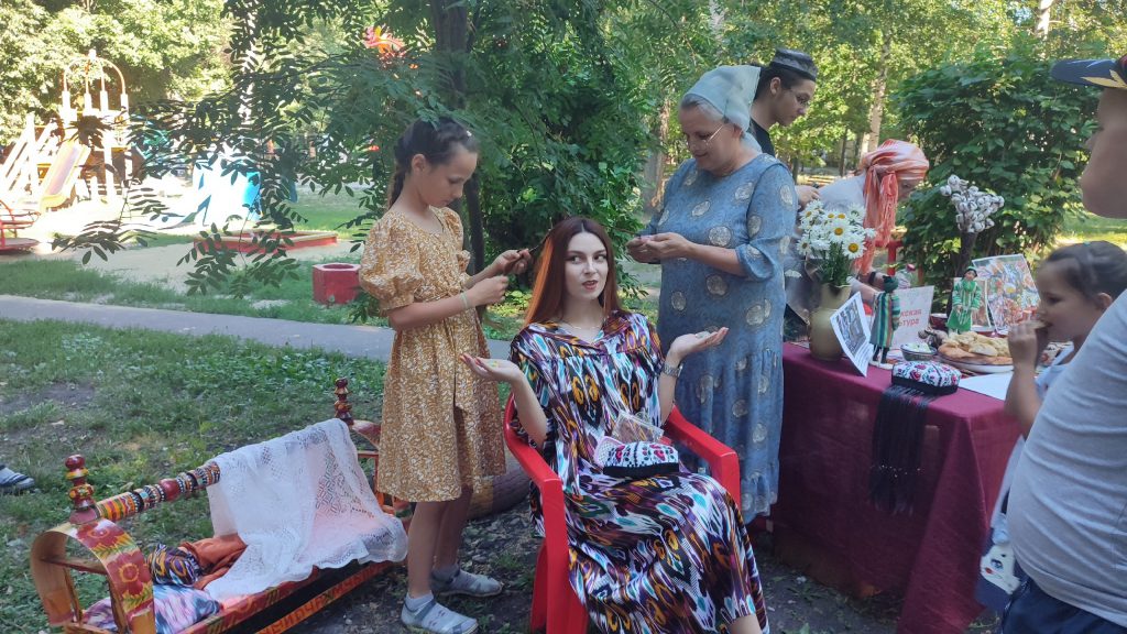 Посетителей праздника приветствовали почётный гости: глава города С.А. Златогорский, протоиерей С. Сидоров. Главными действующими лицами торжества стали семьи с детьми. Для них библиотекари провели этноквест «В семье единой». На станциях участники квеста узнали о семейных традициях народов, населяющих Пензенскую область, а также выполнили небольшие задания: заплели узбекские косички, сыграли на деревянных ложках, сшили чувашское налобное украшение, примерили татарские национальные костюмы, освоили технику прядения веретеном и другие.