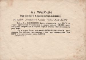 32. благодарность Рокоссовскому за овладение городом Слоним