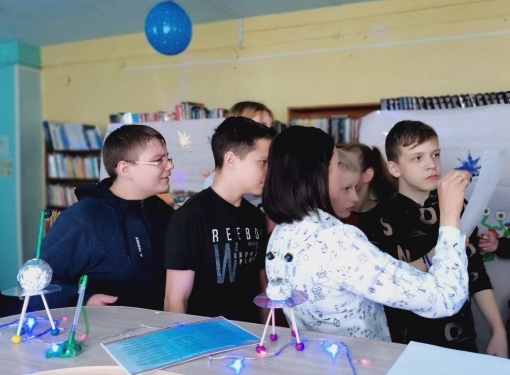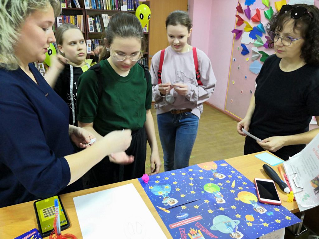 В детской библиотеке первоклассники школы № 4, воспитанники студии современного танца «Диамант», юные и взрослые читатели приняли участие в интерактивной игре «Литературный звёздопад». На каждой станции игроков встречали известные герои книг и фильмов: Незнайка, инопланетянин Чумозека и птица Говорун, робот Вертер. Чтобы стать победителем игры, нужно было вспомнить содержание известных художественных произведений, связанных с космосом.
