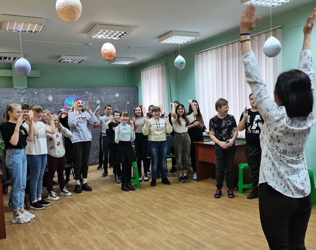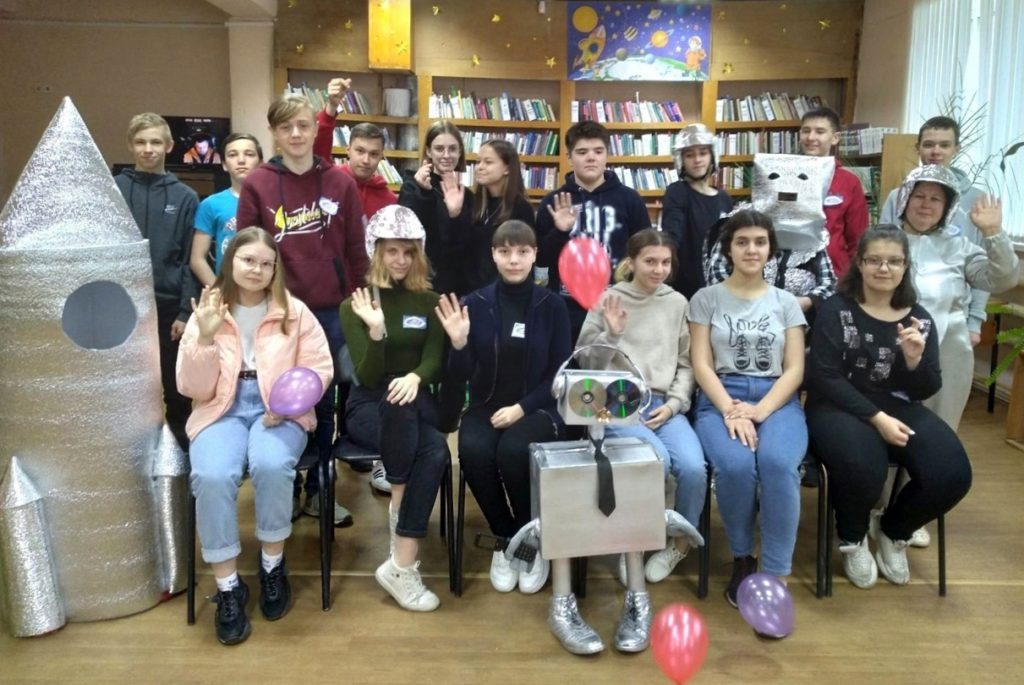 В библиотеке-экоцентре в интерактивной игре «На пыльных тропинках далёких планет» участвовали девятиклассники школы № 5. Сотрудники библиотеки, перевоплотившись в Космонавта, Робота и Звёздную Фею, приготовили для ребят различные испытания. Музыкант Ю.А. Батурин поделился воспоминаниями об апрельских событиях 1961 года. Не оставили без внимания фотовыставку Д.Ю. Воронина «Эхо звёздного неба», выставку работ учеников школы № 5 «Этот загадочный космос».