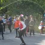 Словно по мановению волшебной палочки из-за туч выглянуло солнышко, и на нескольких площадках парка «Нескучный сад» развернулось праздничное действо. Очень оживлённо и весело было на игровой площадке, где дети окунулись в мир игр советских времён. Ребята с азартом играли в «вышибалы», прыгали через скакалку, девочки прыжками преодолевали квадратики игры в классики на асфальте. Самые маленькие набирали очки с помощью кольцеброса. А за театральной ширмой сотрудниками центральной городской библиотеки им. А.Н. Радищева детям был показан кукольный спектакль «Мешок яблок».