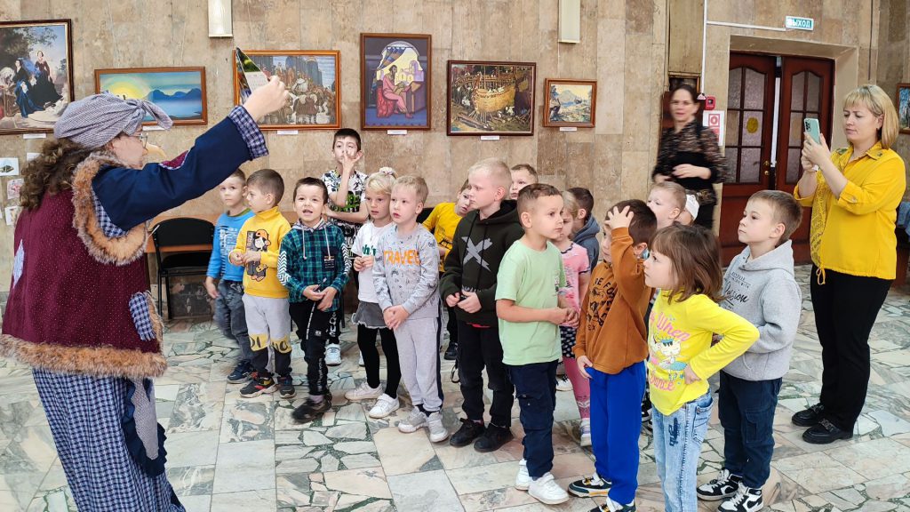 В вестибюле кот учёный рассказал дошкольникам, что такое библиотека, как можно записаться в неё, показал формуляр читателя и объяснил правила поведения в библиотеке. Ребята с восторгом смотрели на книжные полки: такого количества книг в красивых переплётах дети ещё никогда не видели.