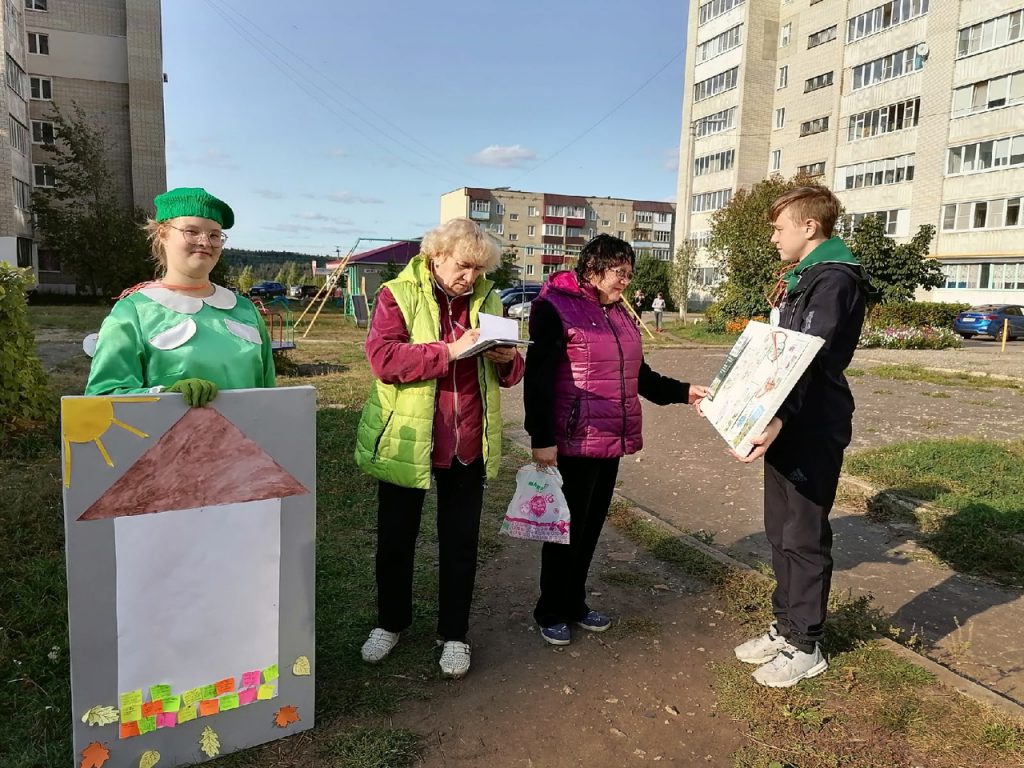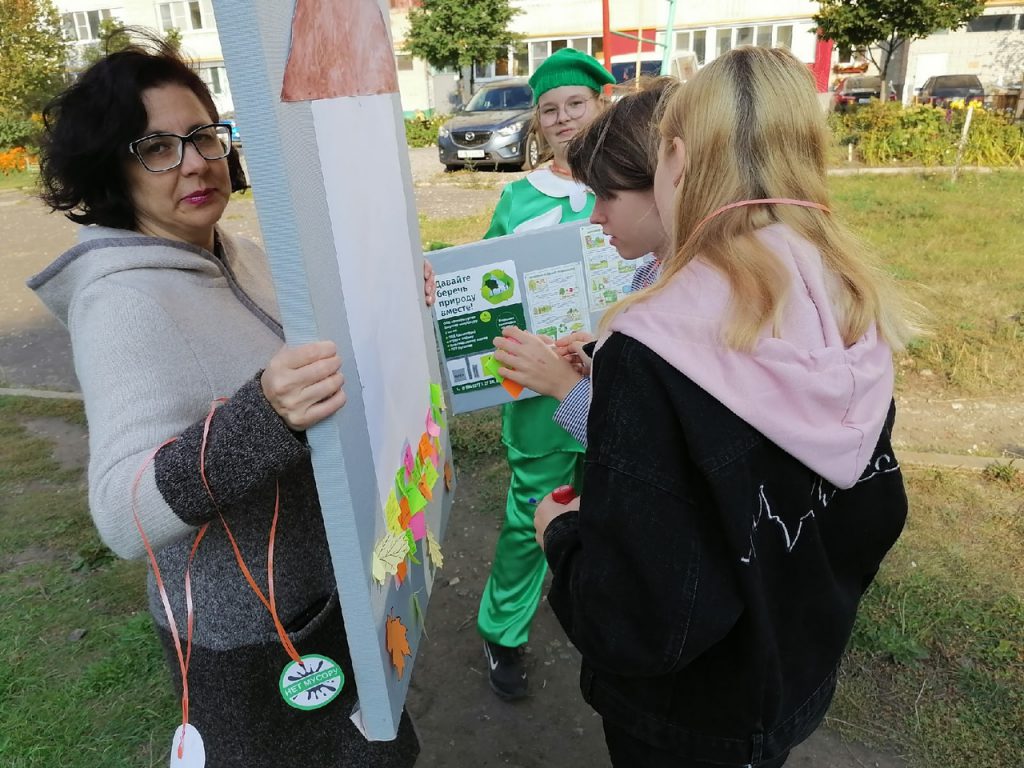Библиотекари и старшеклассники решили напомнить жителям микрорайона о необходимости экологичного отношения к бытовым отходам, организовав акцию в уличном формате. Вооружившись переносными информационными стендами, организаторы акции прошли по улицам микрорайона и предложили прохожим пройти письменный опрос, оставить пожелание в форме «стикер-кирпичика» квилта «ЭКОдом», сфотографироваться с Экошей. Всем участникам акции на память вручалась экомедаль «Нет мусору!». Акцию поддержали 50 жителей микрорайона. Результаты анкет (опроса) предполагается использовать при организации локальных акций по очистке территорий от мусора в Западном микрорайоне.