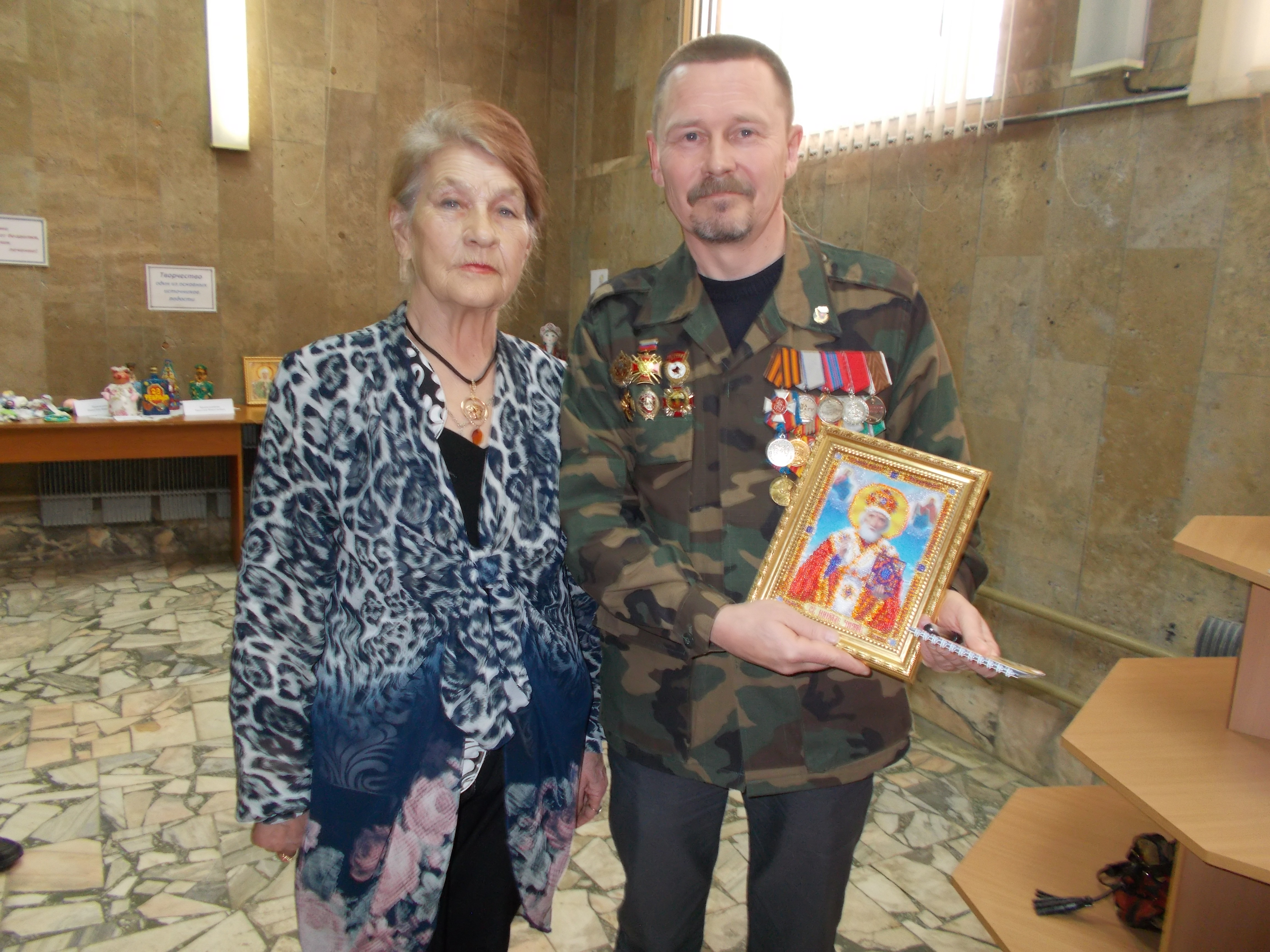 Собравшиеся засыпали гостей вопросами о событиях Афганской войны, чеченских войн, о наградах, когда и за что они были получены, какая самая памятная, о ранениях. Спрашивали и о том, кого принимают в организацию, откуда берутся средства и о многом другом.  Завершилась беседа минутой молчания в память о тех, кто погиб, выполняя воинский долг. Член клуба «Гармония» Нина Николаевна Новичкова подарила Вадиму Викторовичу икону Николая Чудотворца, вышитую своими руками.