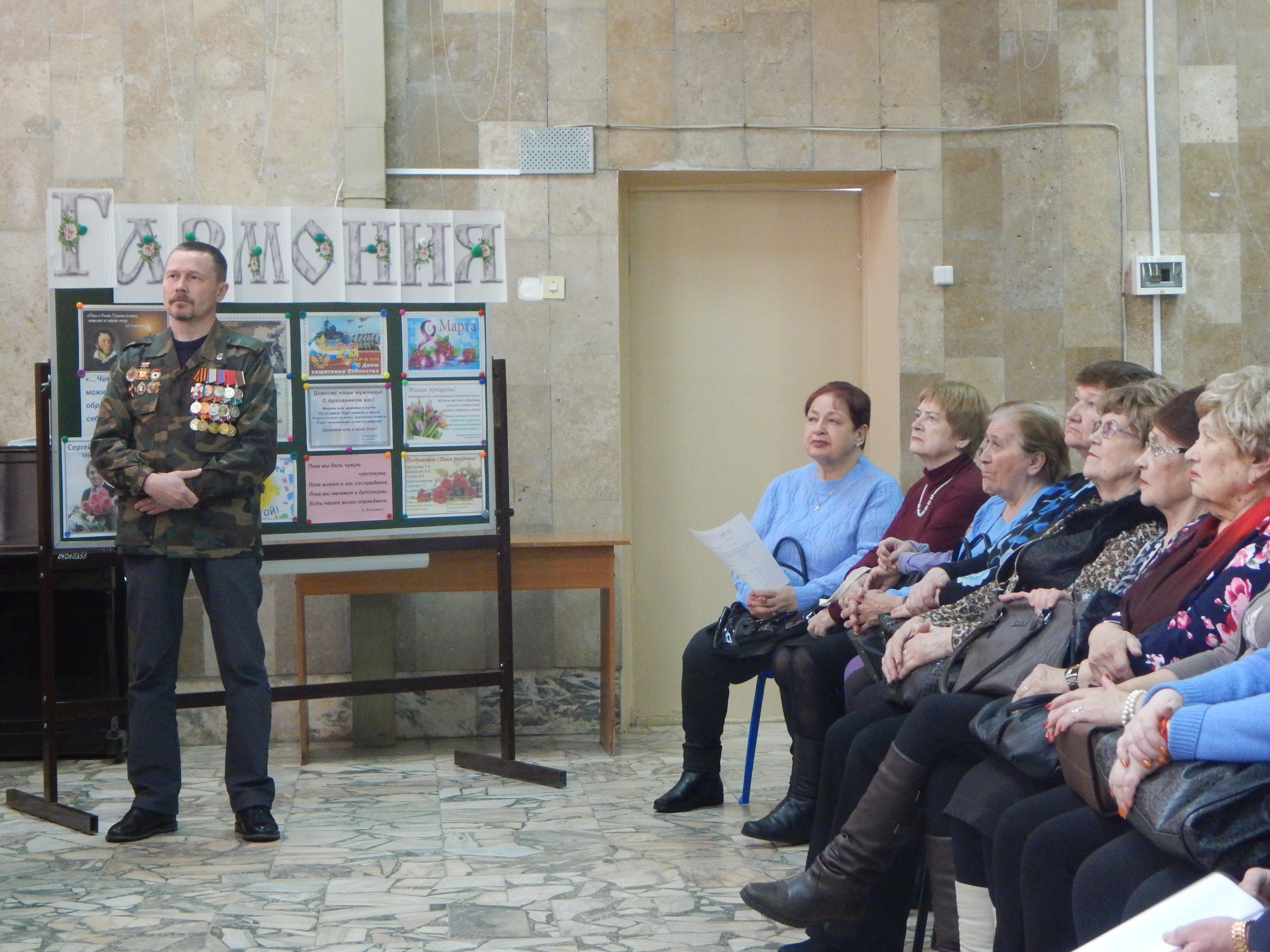 Февраль богат на праздничные и знаменательные даты. Но главным событием этого месяца в 2019 году стало 30-летие вывода советских войск из Афганистана. Именно Дню памяти о россиянах, выполнявших служебный долг за пределами Отечества, был посвящён вечер. Гостями клуба стали представители Кузнецкого отделения Всероссийской общественной организации ветеранов локальных войн и военных конфликтов «Боевое братство» – Вадим Викторович Барышников и Михаил Юрьевич Басов. Председатель кузнецкого отделения организации Вадим Викторович рассказал о деятельности «Боевого братства», которая состоит в обеспечении защиты прав и законных интересов ветеранов и инвалидов войн и локальных конфликтов и их семей. Однако главной целью своей работы представители организации видят в патриотическом воспитании молодёжи.