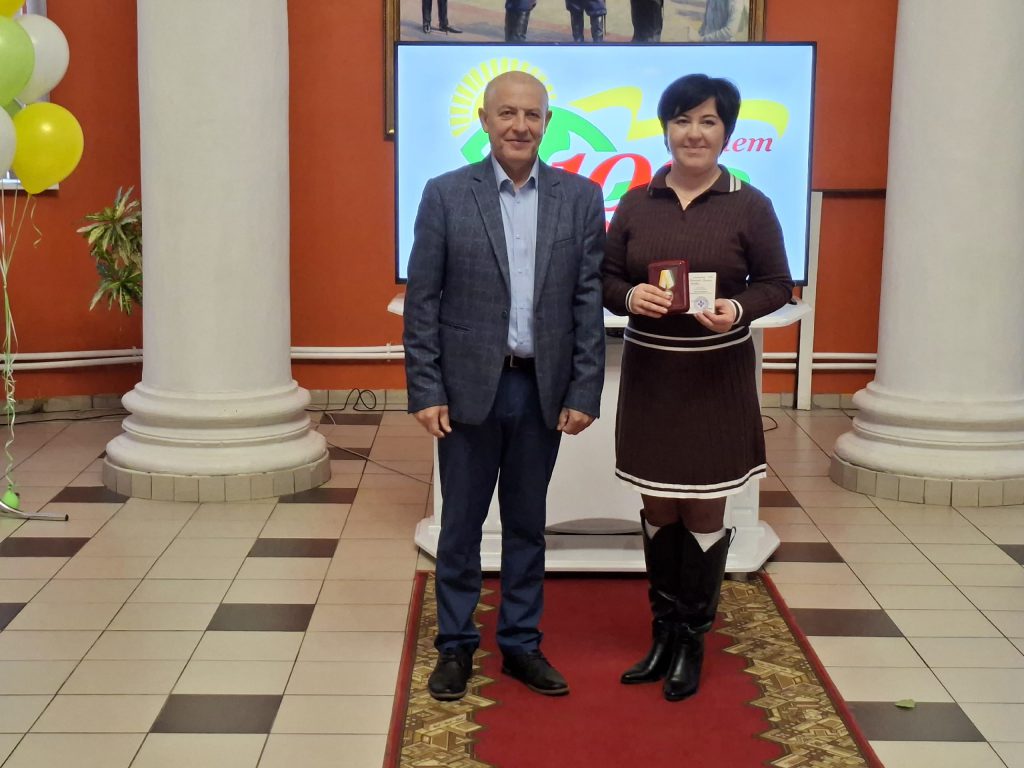 Собравшихся с юбилеем поздравил руководитель Кузнецкой местной организацией ВОС Алексей Михайлович Рузанов. Ветераны и активные члены общества слепых были награждены юбилейными медалями в честь 100-летия ВОС. В числе награждённых – ведущий библиотекарь центральной библиотеки Л.И. Рахмятуллина.