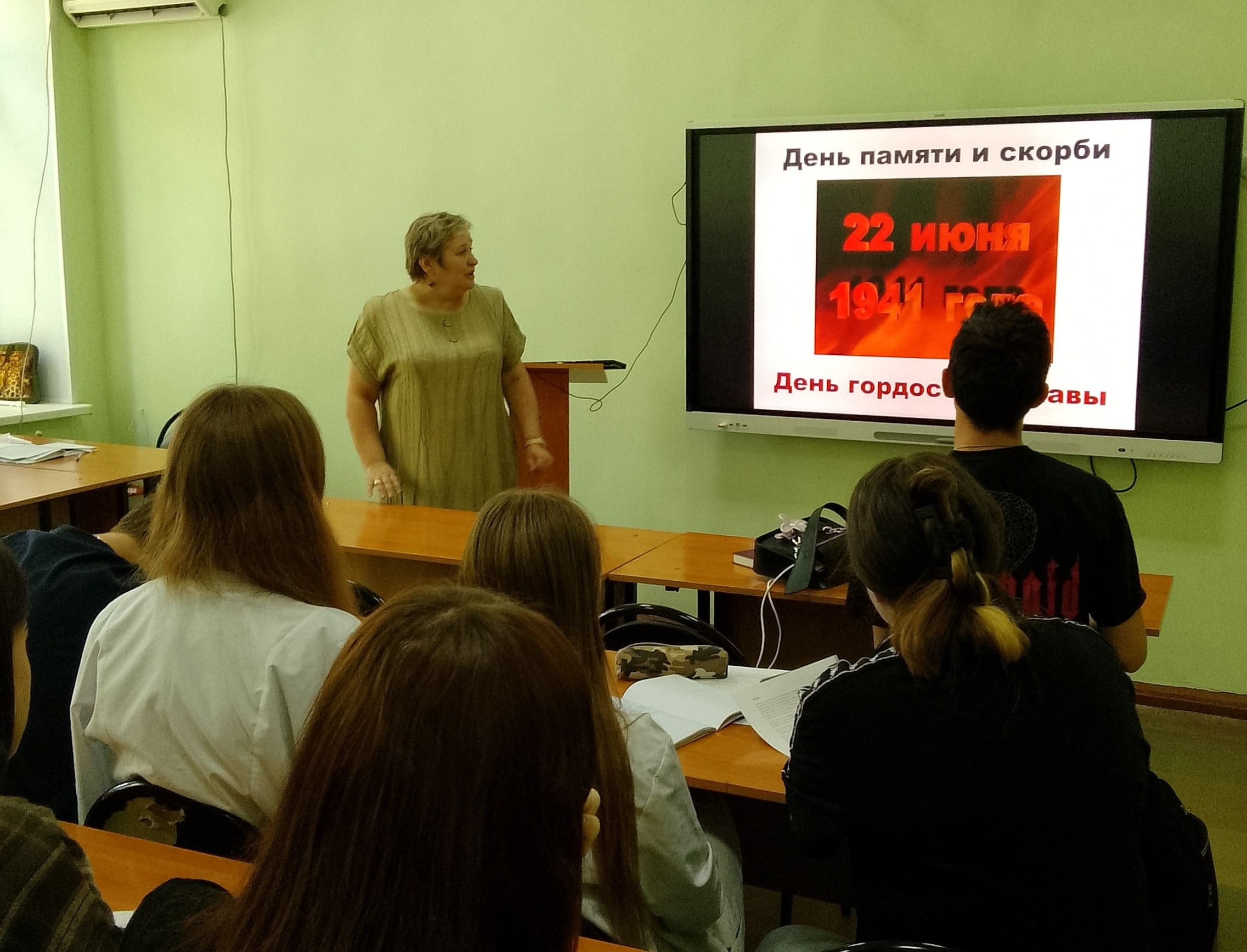 Накануне Дня памяти и скорби сотрудники центральной городской библиотеки им. А.Н. Радищева провели для студентов Кузнецкого многопрофильного колледжа час памяти «Великой Родины солдат, ты в нашей памяти навечно». Библиотекарь рассказала о бесчеловечных планах гитлеровского командования в отношении Советского Союза, о первых часах войны, о героизме советских солдат, о подвигах, совершенных нашими воинами в первые дни войны.