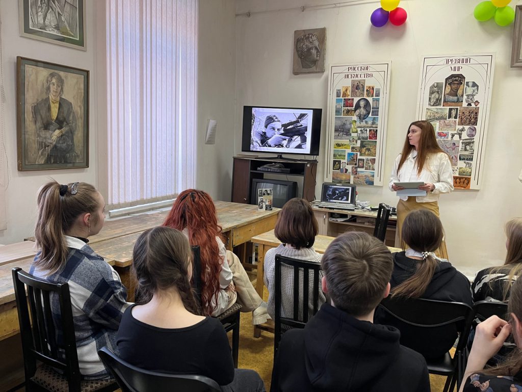 На встрече говорили о женщинах, делом жизни которых стала служба на благо страны. Первая, с кем познакомились ребята ˗ Людмила Павличенко, единственная женщина-снайпер получила звание Героя Советского Союза при жизни, лично уничтожила почти батальон фашистов.