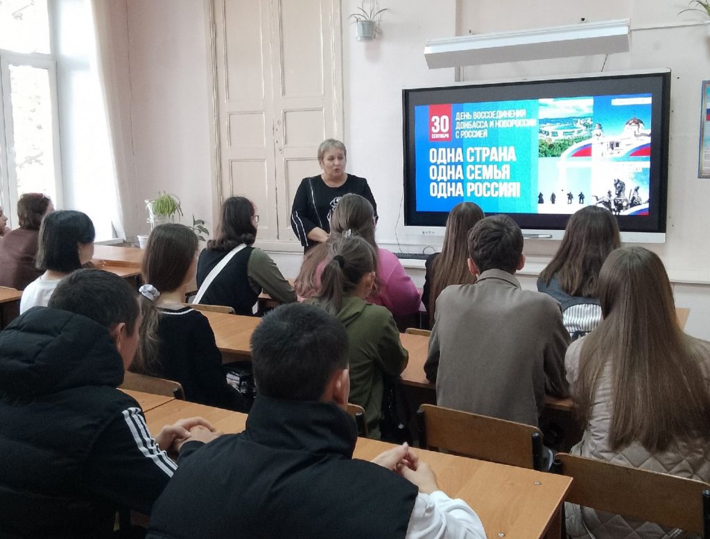 К этой дате сотрудники центральной городской библиотеки им. А.Н. Радищева провели для студентов Кузнецкого многопрофильного колледжа актуальный разговор «Россия – Новороссия: от Дикого поля до цивилизации». Разговор был посвящен истории самого молодого праздника России. Студенты узнали, что ДНР и ЛНР, Херсонская и Запорожская области заслужили право на возвращение хотя бы потому, что сотнями лет являлись территорией исконной России. Собравшимся рассказали о том, какой трудный путь прошли в течение восьми лет жители регионов, отстаивая свое право говорить на русском языке, добиваясь независимости и признания, о значении Донбасса для России, а также о тех, кто сейчас стоит на защите нашей Родины.