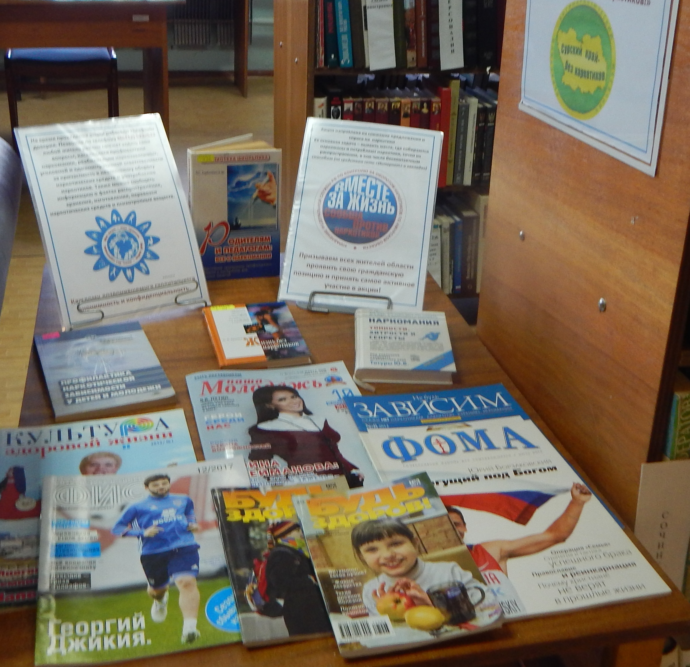 На выставке представлены книги, брошюры, статьи из журналов, посвященные проблеме наркомании, как глобальной угрозе здоровью населения страны и национальной безопасности. В изданиях освещаются негативные последствия наркомании, как для физического, так и для морального здоровья молодёжи и социальной стабильности российского общества.