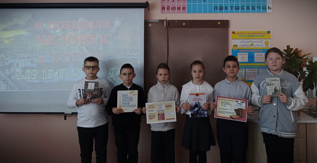 Учащиеся начальных классов стали участниками урока «Хлеб той зимы». Они услышали о детях блокадного Ленинграда, которые работали на заводах, тушили зажигательные бомбы и продолжали учиться. Особое впечатление на ребят произвела история Тани Савичевой и наглядный пример блокадного пайка — те самые 125 граммов хлеба.