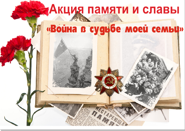 Уже несколько поколений выросло после окончания Великой Отечественной войны. В России нет ни одной семьи, в жизни которой эта война не оставила бы свой горький след. В рамках подготовки к празднованию Дня Победы Кузнецкая центральная городская библиотека им. А.Н. Радищева объявляет о начале городской акции памяти и славы «Война в судьбе моей семьи». Главная цель акции – сохранить историческую память о народном подвиге в Великой Отечественной войне 1941-1945 годов.