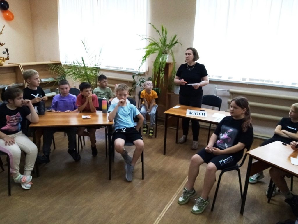 Сотрудники библиотеки-экоцентра для ребят летнего лагеря школы № 5 организовали игровую  программу «Вперёд, Россия!».
