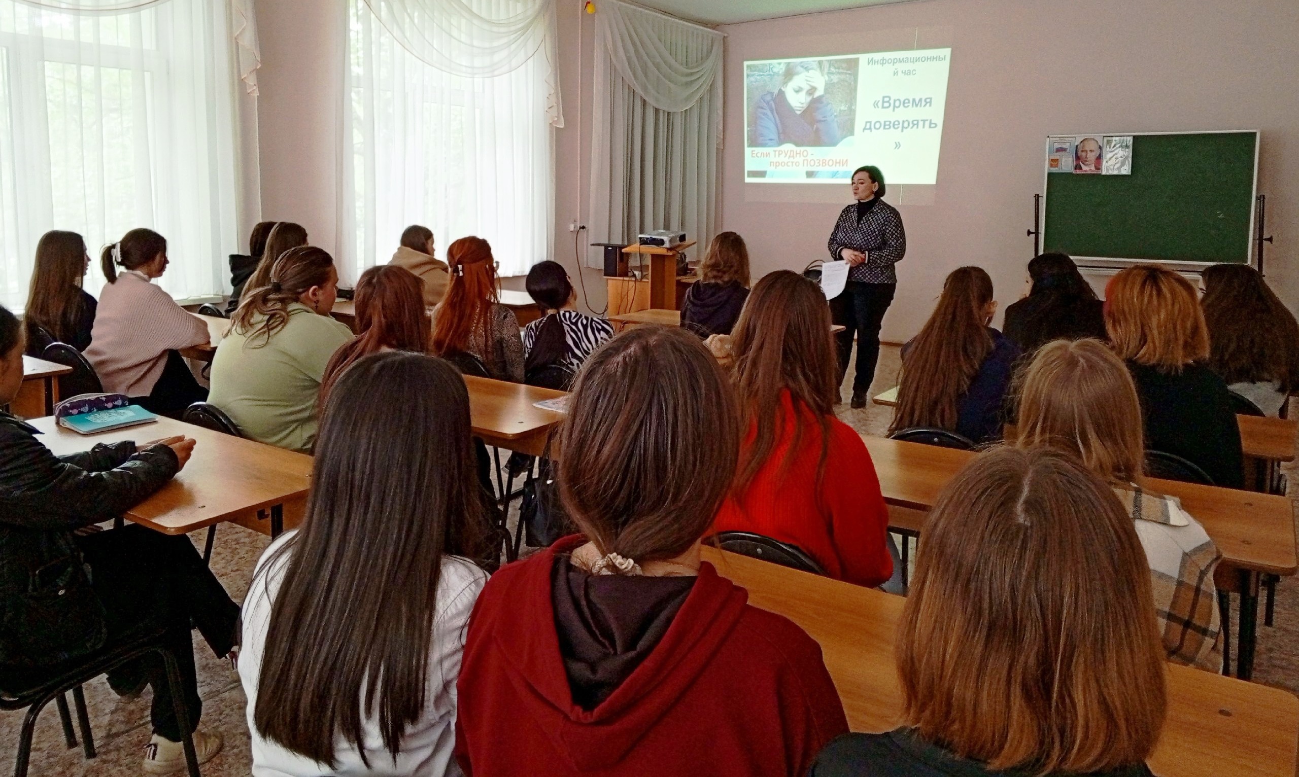 В начале мероприятия библиотекарь рассказала о британском священнике Чаде Варе, который разместил в газете номер своего телефона и приглашение позвонить и поговорить, если человеку трудно. Вскоре его телефон раскалился от огромного количества звонков. Студенты узнали, для чего нужен телефон доверия, по какому принципу он работает и какую помощь можно получить от консультантов по телефону.