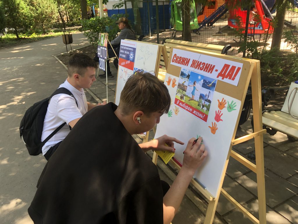 Участники акции выразили свое отношение к проблеме наркозависимости и здоровому образу жизни, приклеивая ладошки с лаконичной подпись «ДА!» под девизом: «Я выбираю жизнь!». Молодым людям были вручены листовки «Выбери жизнь!» с призывом вести здоровый образ жизни, учиться противостоять трудностям, опираясь на активную жизненную позицию, живое общение со сверстниками.