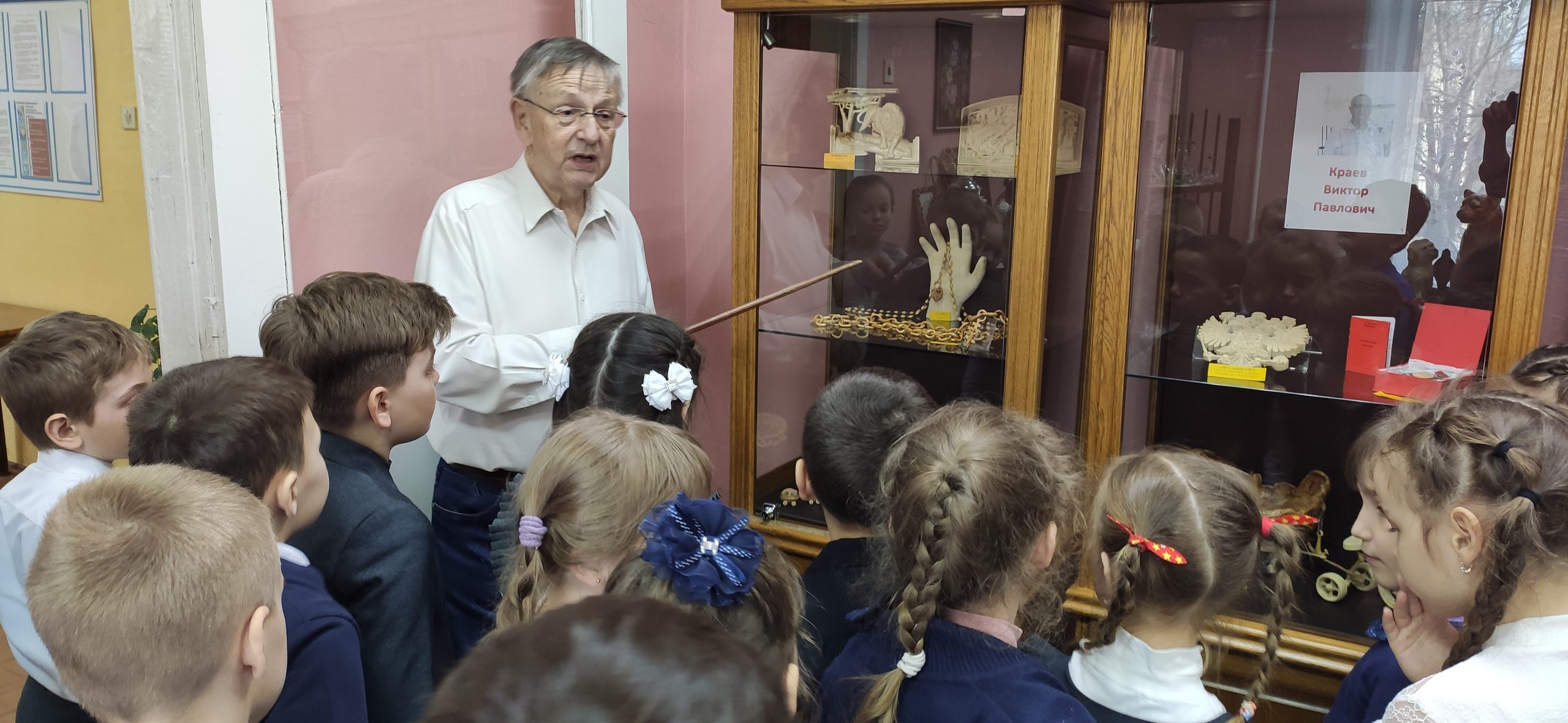 В филиале № 5 состоялась встреча учащихся школы № 8 с мастером резьбы по дереву В.П. Краевым.