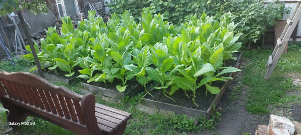 У многих вызвала вопрос культура с большими листьями изумрудного цвета. Это табак сортов Вирджиния, Юбилейный.