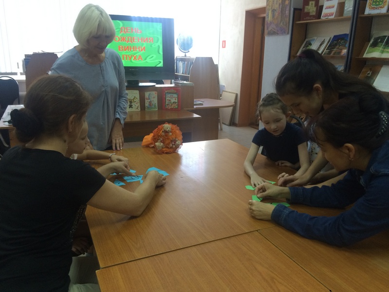 Мальчишки и девчонки, а также их родители узнали историю русского Винни Пуха, пересказанную замечательным детским писателем Борисом Заходером, которому 9 сентября исполнилось 100 лет со дня рождения. Ребята на «Смехолёте» отправились в Зачарованный лес, где жили герои, ответили на вопросы тётушки Совы, показав все свои знания, в филворде отыскали спрятавшихся зверей, решили кроссворд, вспомнили Шумелки, Кричалки, Вопилки, Сопелки, Пыхтелки обаятельного медвежонка. Больше всего ЛИССятам понравилась игра «Потерянный хвост». Дети и взрослые с завязанными глазами прикрепляли «хвост» к нарисованному ослику Иа. В завершение ребята просмотрели отрывок из мультфильма «Винни Пух и все-все-все». Так наши читающие семьи весело и с пользой провели воскресный день, смогли погрузиться в добрый сказочный мир героев Алана Милна. По традиции встреча завершилась чаепитием.