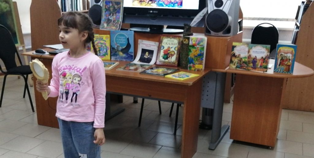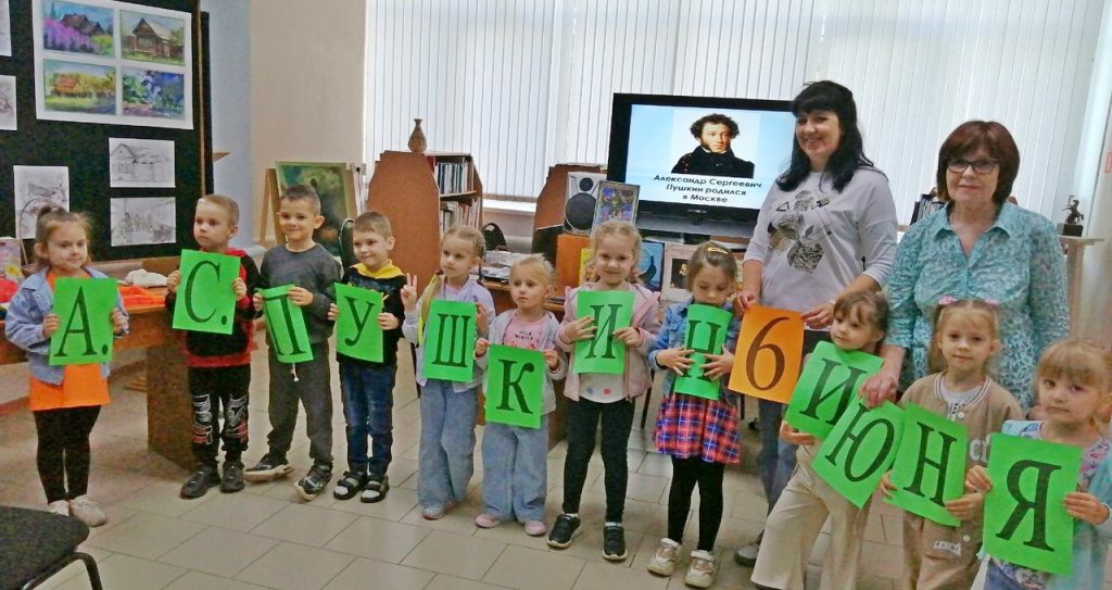 Сотрудники юношеской библиотеки рассказали дошкольникам о жизненном и творческом пути поэта, зачитали отдельные сюжеты его сказок, а весёлая викторина-лото закрепила знания. Дружно ребята вспоминали окончания фраз из сказок, продолжали предложенные отрывки, узнавали сказки по иллюстрациям. Подсказкой к правильным ответам на вопросы викторины служили книги с выставки «Строкою Пушкина воспеты».