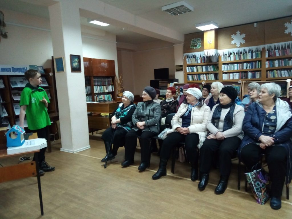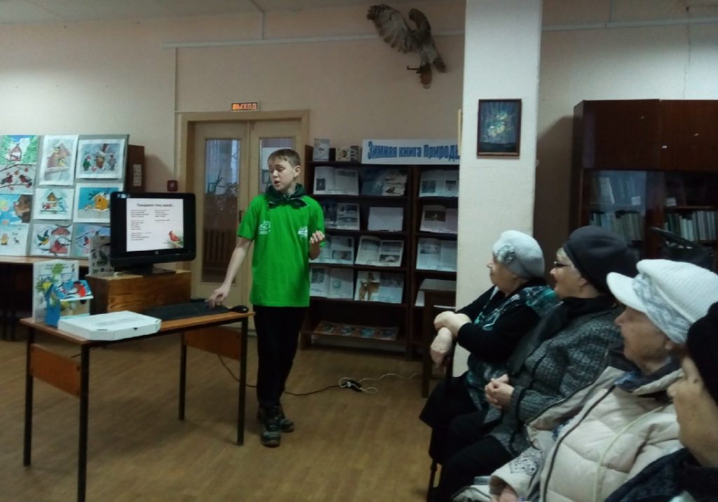 Эковолонтёр обратился к участникам клуба «Надежда» с призывом поддержать всероссийскую акцию «Покормите птиц зимой!», по возможности наполняя кормушки, установленные в Западном микрорайоне. В свою очередь, участники клуба тоже рассказали, как подкармливают птичек семенами подсолнуха, крошками белого хлеба, как фотографируют пернатых. «Надеждинцы» поблагодарили Дмитрия за интересный рассказ и пожелали успешной защиты проекта.