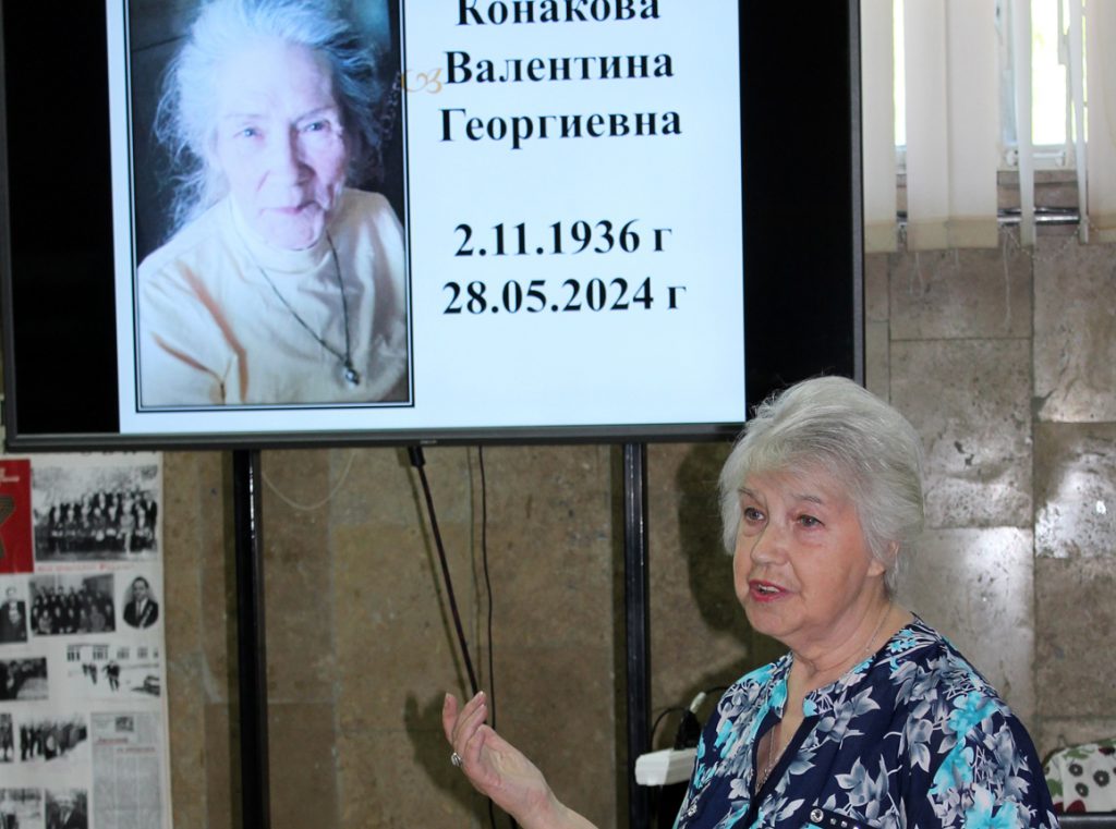 Открылось майское свидание с печального известия. На 88 году ушла из жизни одна из старейших членов нашего клуба Валентина Георгиевна Конакова. Она, можно сказать, стояла у колыбели «Гармонии», её помнят очень и очень многие. О жизни Валентины Георгиевны, о её работе по организации логопедической работы в нашем городе говорили ее сослуживцы, знакомые и подруги – Т.Н. Паньшина, О.Б. Лисина, В.С. Куликова. Анна Васильевна Никифорова представила книгу В.Г. Конаковой, где рассказывается о развитии логопедической службы в Кузнецке. Все собравшиеся вспоминали Валентину Георгиевну только добрыми словами.