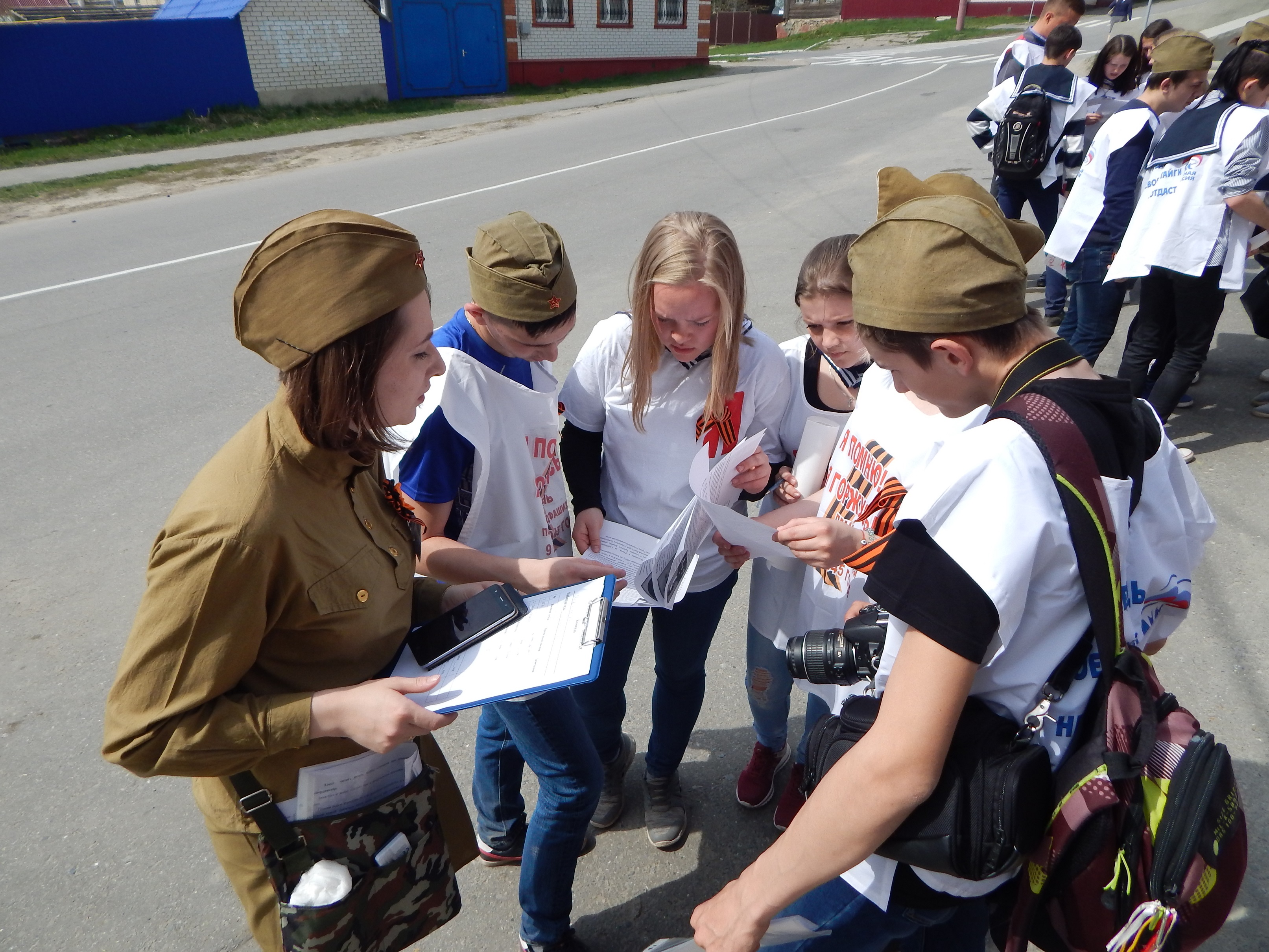Получив вводный инструктаж в зале центральной горосдкой библиотеки им.А.Н. Радищева, ребята отправились по станциям выполнять трудные задания: рисовали плакат-лозунг, который смог бы пробудить патриотические чувства горожан, собирали пазлы, примеряли роль военных медиков, накладывая повязки на раненных бойцов, принимали участие в исполнении фронтовых песен, разгадывали кроссворды, составляли рецепт гречневой каши, пробовали солдатскую кашу. Финальным аккордом игры стала фотография на память и исполнение на Холме Воинской Славы песни «День Победы».
