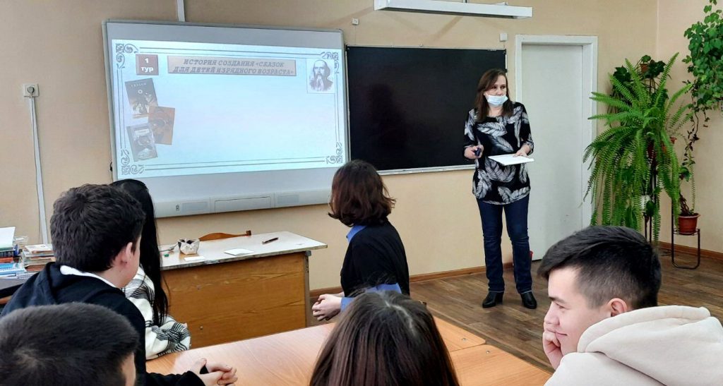 В конце игры старшеклассники представили домашнее задание. Ребята рассказали отрывки из сказок «Самоотверженный заяц», «Медведь на воеводстве» и «Дикий помещик», справившись с достаточно трудным тестом писателя.