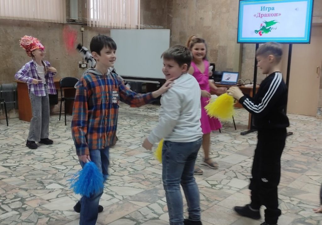 Звонкий смех, счастливые лица мальчишек и девчонок – такая оживлённая атмосфера царила в библиотеке в этот воскресный день. Четвероклассники участвовали в веселых конкурсах и играх: вспомнили героев зимних сказок, варили «новогодний супчик», наряжали своих мам, играли в «Дракона», собирали снежинки. Мероприятие украшали задорные, ритмичные мелодии, которые звучали на протяжении всей встречи.