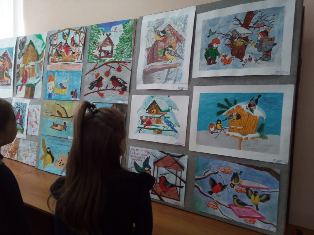 Авторы работ, учащиеся муниципальных школ, призывают мастерить кормушки и «не жалеть ни зерна, ни крошек» для зимующих птиц. В творческих работах представлены красногрудые красавцы снегири, деловитые синицы, воробьи, поползни, дрозды, щеглы, свиристели, клесты и даже совы. На выставке есть и фотографии разных кормушек. Работы на выставку передали педагоги городской станции юных натуралистов, организовавшие в декабре 2019 года социально-экологическую акцию «Птичьи столовые». Лучшие из конкурсных работ экспонируются теперь в экологической библиотеке, восхищая и радуя посетителей. Всего на выставке представлено 74 работы.