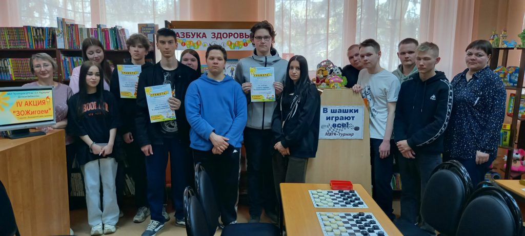 В детской библиотеке прошёл второй матч-турнир «В шашки играют все!» в рамках IVАкции «ЗОЖигаем».