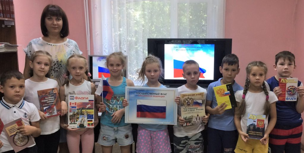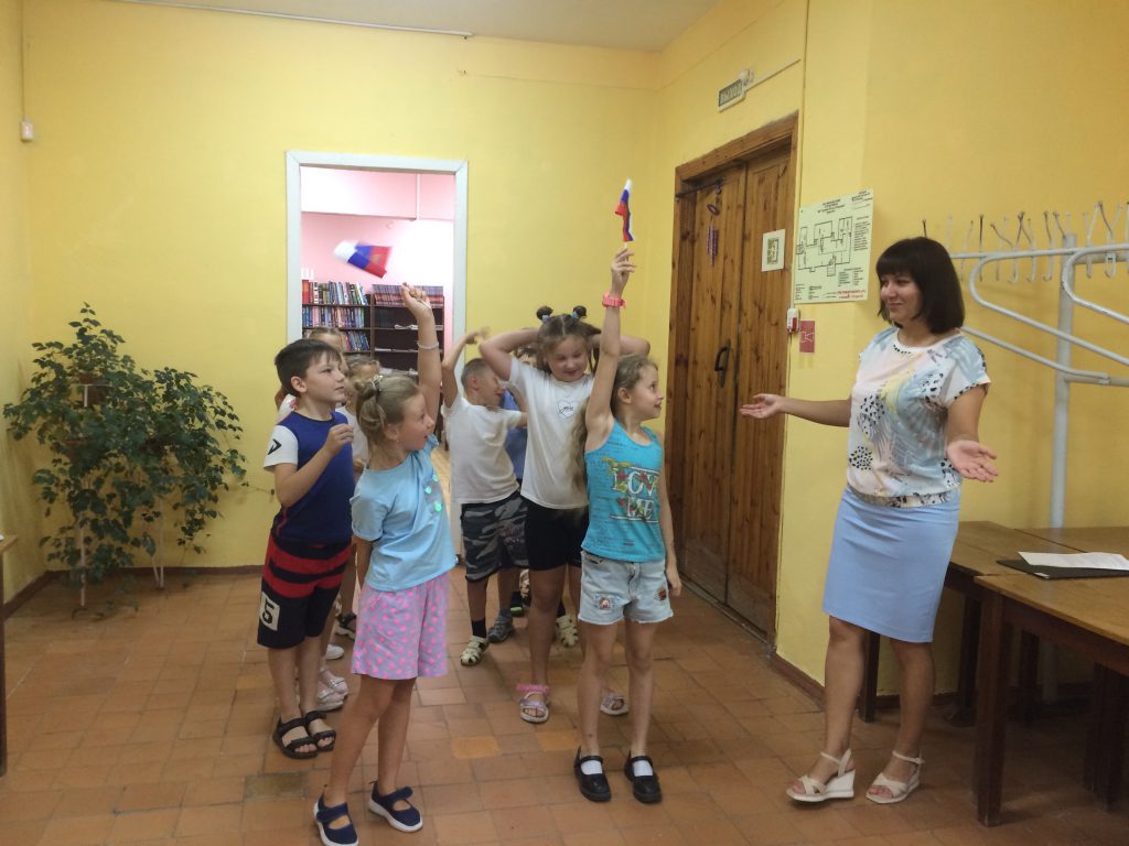 В филиале № 5 для детей из пришкольного лагеря состоялась познавательно-игровая программа «Под символом славным могучей державы!».