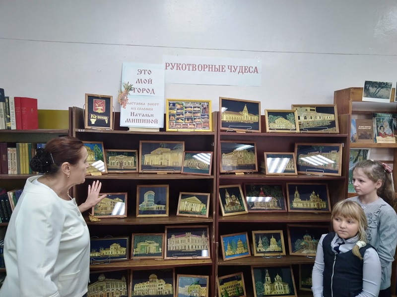 Оказывается, из такого простого материала, как солома, лежащего буквально у нас под ногами, можно создавать настоящие шедевры. Мастерица не перестает восхищать нас своими уникальными работами. Ярким тому подтверждением являются панно, представленные на выставке «Это мой город»: здания городской и районной администраций, храмов, музеев, гимназии №1 и многих других. Картины дарят нам свои особенные, ни с чем не сравнимые ощущения — свет, тепло и изумительные, солнечные краски «золота» соломки.