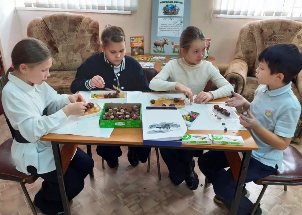 В филиале № 9 участники творческой студии «Родничок» рисуют и конструируют животных из природного материала.
