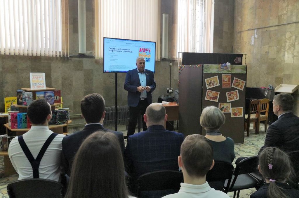 Инициатором проведения общероссийской акции «Дарите книги с любовью» является Ассоциация деятелей культуры, искусства и просвещения по приобщению детей к чтению «Растим читателя». Акция приурочена к Международному дню книгодарения, который отмечается 14 февраля во многих странах мира. В рамках акции все желающие могли подарить муниципальным библиотекам книги – новые и бывшие в употреблении, но в хорошем состоянии. Кроме этого, в этом году поучаствовать в акции можно было и через платформу https://добровольцыроссии.рф/organizations/821341. Всем добровольцам, присоединившимся к акции и подарившим библиотеке хорошие книги, будет сделана соответствующая отметка в электронной книжке добровольца.