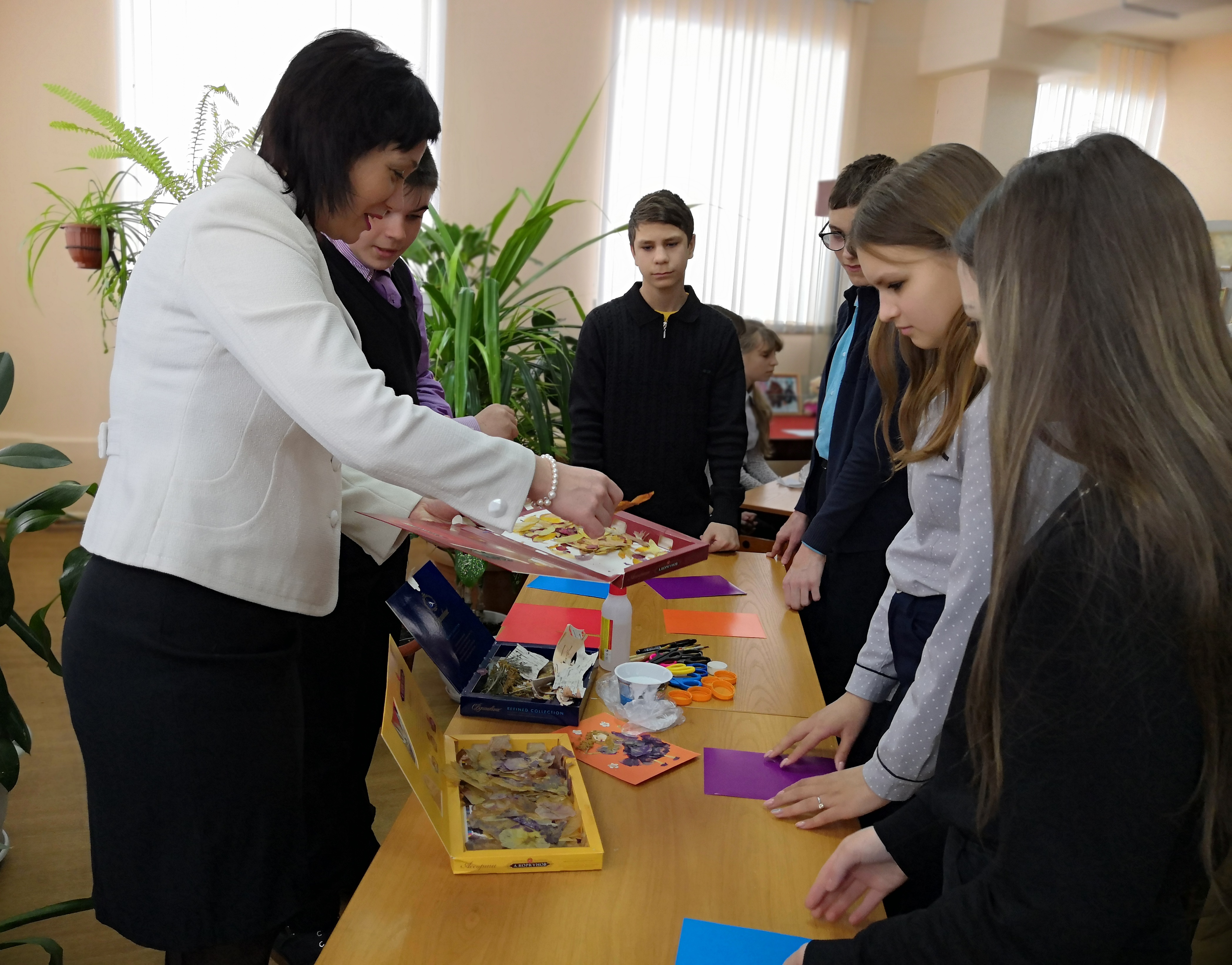 Библиотека-экоцентр пригласила семиклассников школы № 5 на необычную встречу. Ребята со своим классным руководителем Еленой Сергеевной Башкировой попали в творческую мастерскую педагогов станции юных натуралистов.