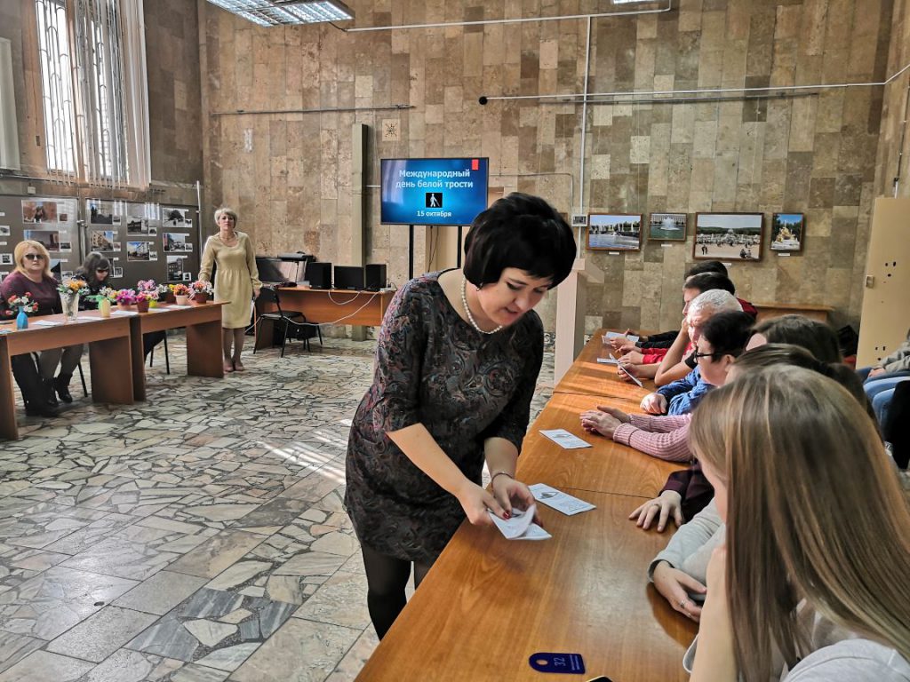 В начале встречи присутствующие познакомились историей Международного дня «белой трости». Он призван привлечь внимание общества к проблемам слепых и слабовидящих и сформировать толерантное отношение к ним.