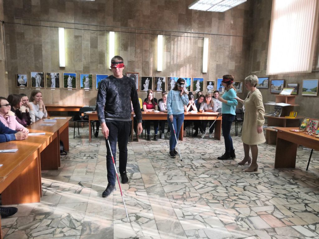 Кузнецкая центральная городская библиотека им. А.Н. Радищева совместно с Кузнецкой местной организацией общества слепых присоединилась к Месячнику «Белая трость-2019», в рамках которого 17 октября в библиотеке состоялось необычное мероприятие для студентов Кузнецкого филиала Пензенского областного медицинского колледжа.