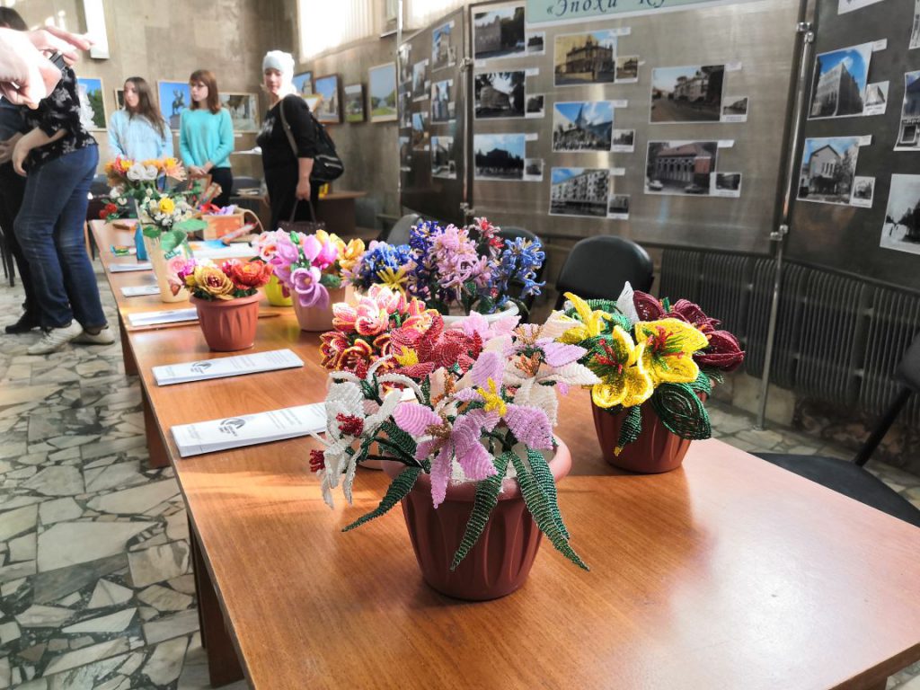 Самая молодая участница акции Анна Щапова, тотально незрячая, тоже пришла с не пустыми руками и принесла замечательные цветочные букеты, сплетённые из бисера. Аня для студентов организовала мастер-класс по технике письма шрифтом Брайля.