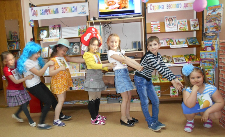 Сотрудники детской библиотеки провели конкурсную программу «Когда все вместе, сердце на месте». Дети и родители вспоминали пословицы и стихи о семье, отвечали на вопросы викторины «Сказочная семья». Особенно понравились собравшимся конкурсы: «Я самая обаятельная и привлекательная», «Музыкальная веревочка», «Театр – экспромт». Девочки и мальчики участвовали в импровизированной постановке сказки «Репка».