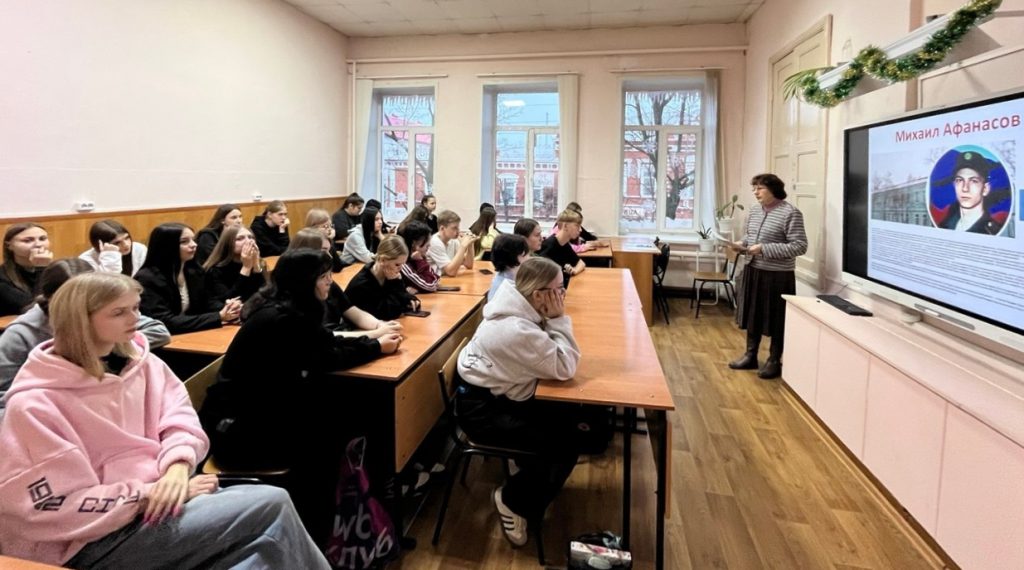 В преддверии Дня Героев Отечества сотрудником центральной библиотеки им. А.Н. Радищева был проведен краеведческий час памяти «Нам жить и помнить!» для студентов многопрофильного колледжа и учащихся школы №16. Мероприятие было посвящено кузнечанам, погибшим в ходе специальной военной операции.