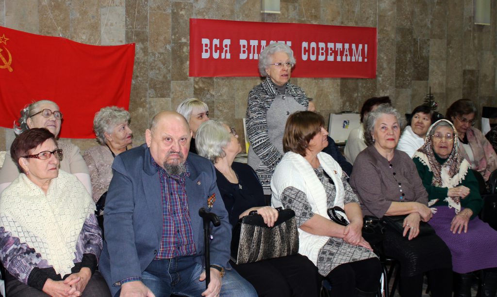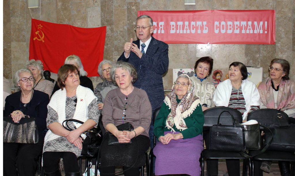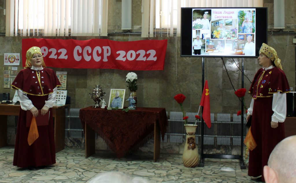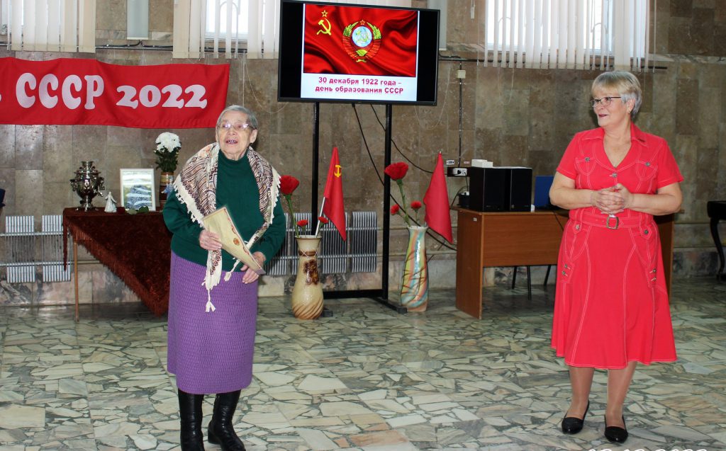Но жизнь продолжается, продолжилась и встреча в библиотеке. Для гостей мероприятия была подготовлена интересная программа, отправившая их в прошлое, в страну, которой уже нет на карте мира, но есть в сердцах миллионов людей, более 70 лет звавшихся единым советским народом. И.А. Расторгуева напомнила собравшимся о величайших свершениях страны, в которой они родились, в которой прошла их юность и молодость. Сопровождением беседы стало видео «Мой адрес – Советский Союз» — о достижениях советского народа и том, чем жил тогда каждый человек.