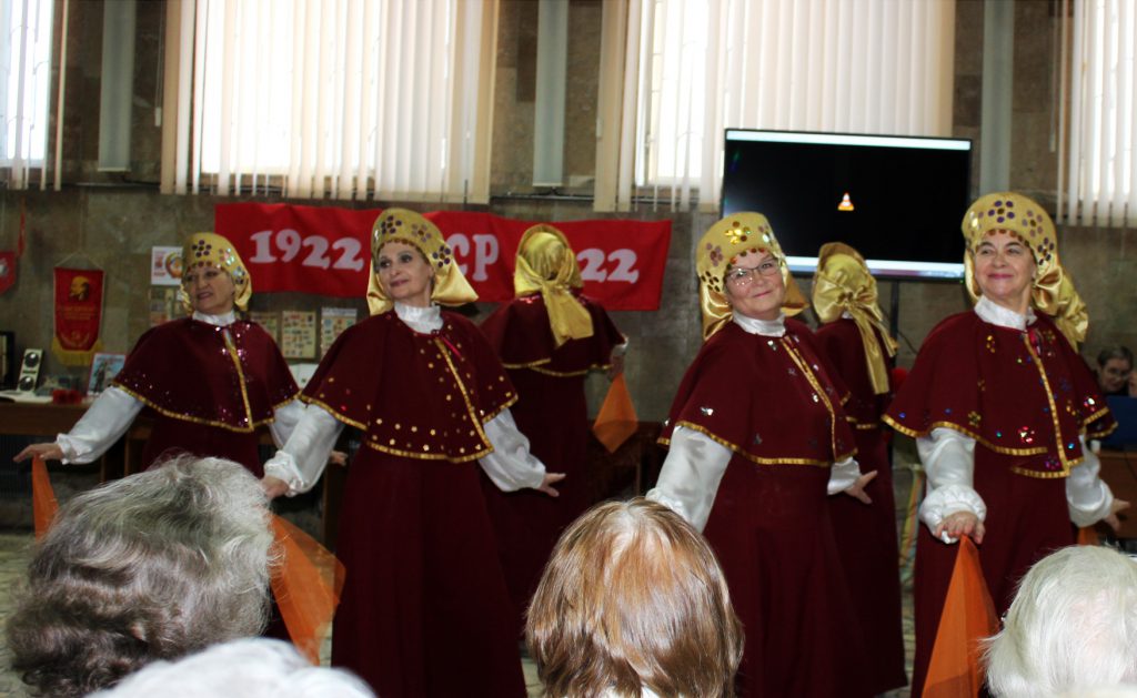 Танцевальная группа коллектива «Гармонии» порадовала выступлением, звучали популярные песни времен СССР.