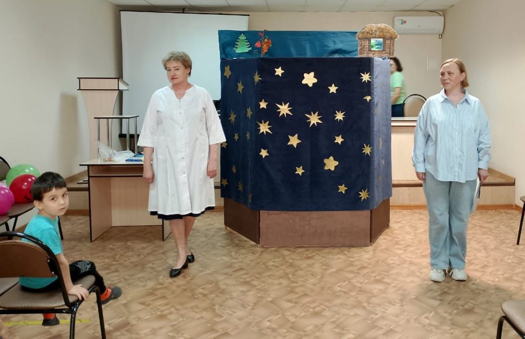 Главный врач больницы Галина Петровна Дерябина поздравила детей с началом лета и пожелала всем скорейшего выздоровления. Пациентам был показан кукольный спектакль «Кот и лиса». Ребята сочувствовали коту Ваське, который оказался один в лесу, и радовались за него, когда он стал хозяином целого леса. Самые маленькие зрители смогли пожать лапу хитрющему Василию.