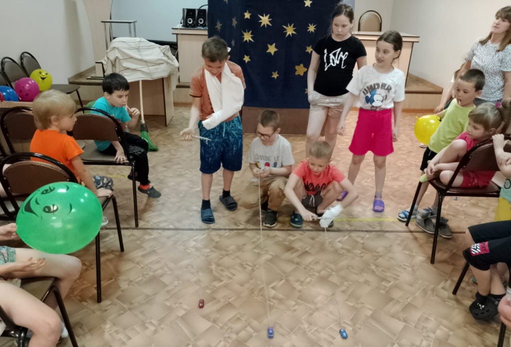 Праздник продолжился весёлыми играми: дети прыгали в мешках, играли с воздушными шарами, возили машинки, строили «паравозик», пели, читали стихи. Юные участники встречи получили сладкое угощение и подарки, которые предоставило местное отделение партии «Единая Россия».