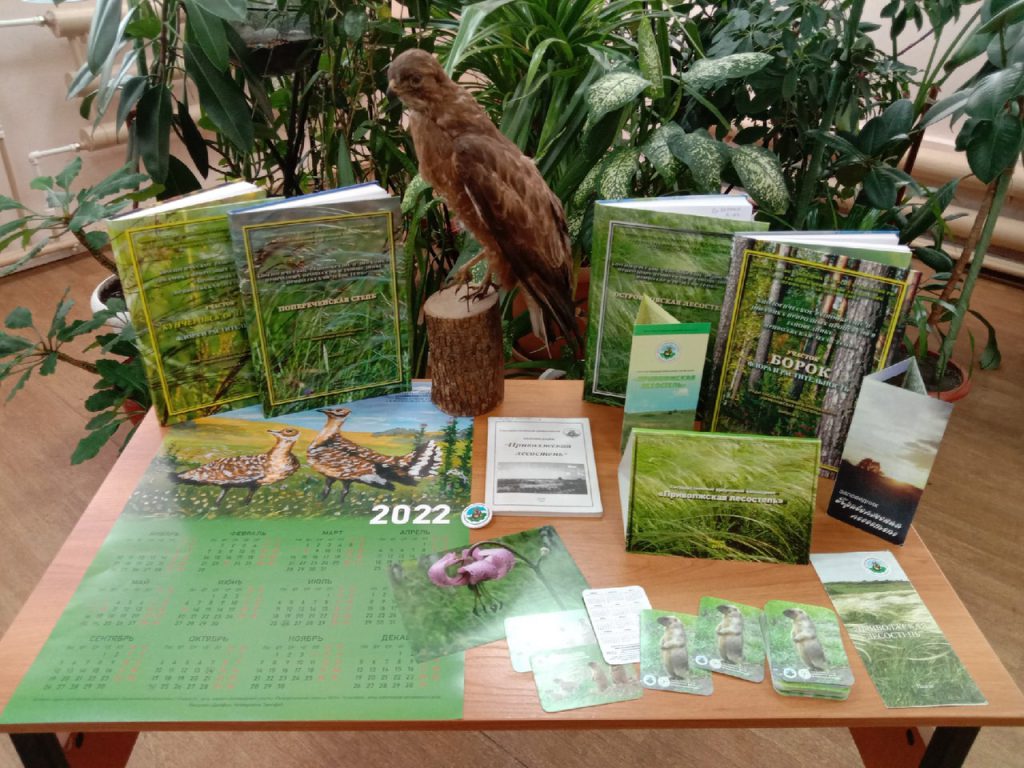 Библиотека-экоцентр с 1996 года сотрудничает с государственным природным заповедником «Приволжская лесостепь», откуда регулярно получает новые информационные материалы о заповедной флоре и фауне. Этот год не стал исключением, и к экологической дате пришли новые поступления. Фотографии, фильмы, календари, закладки, буклеты, значки от «Приволжской лесостепи» используются при организации различных мероприятий по экологическому воспитанию.