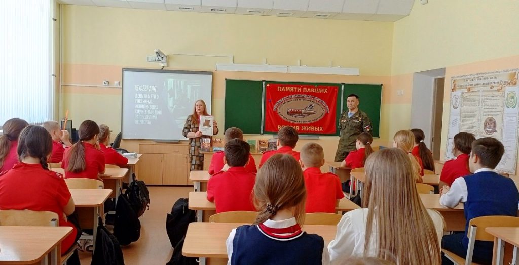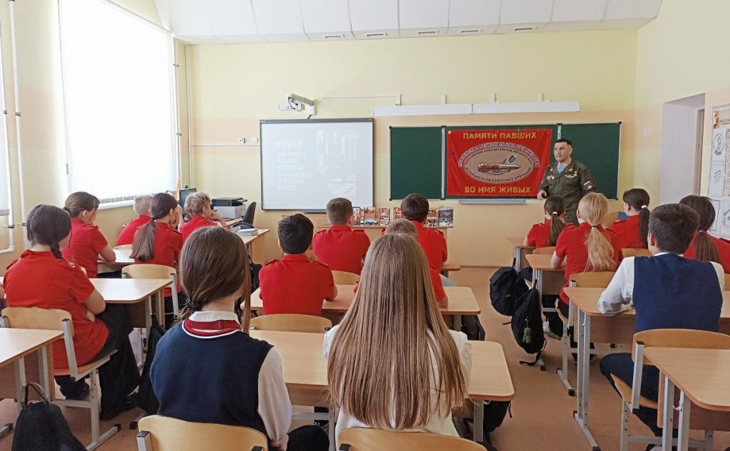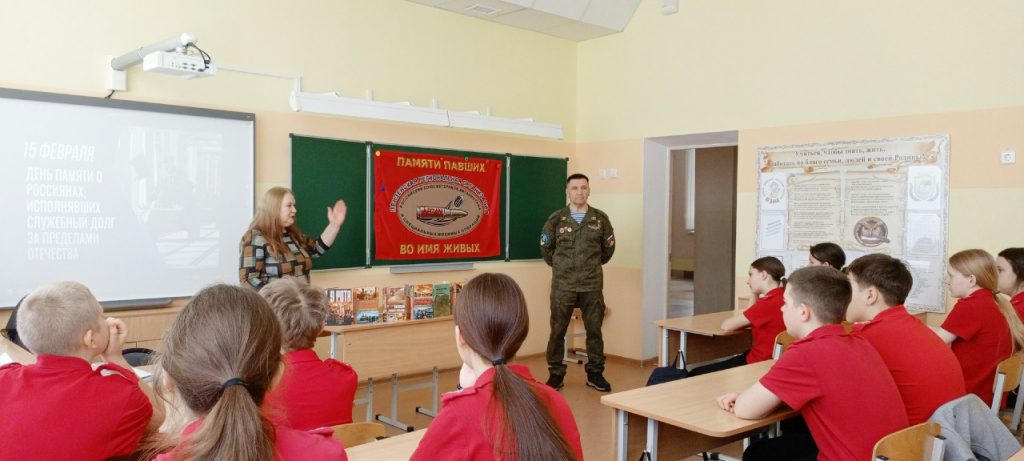 Сотрудники библиотеки-экоцентра накануне Дня памяти о россиянах, исполнявших служебный долг за пределами Отечества, организовали встречу семиклассников школы № 5 с ветераном Афганской войны Р.Р. Шабуровым.