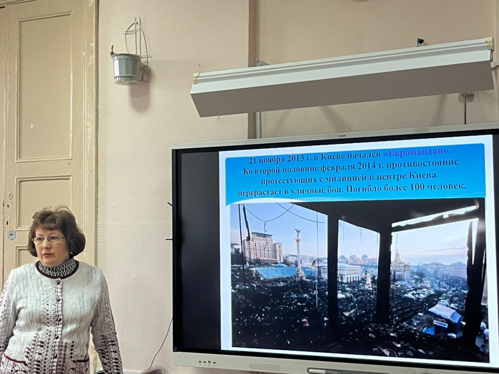 Собравшиеся вспомнили историю долгого и трудного пути возвращения исконно русских территорий в состав России. Им рассказали, что важному событию предшествовали первый майдан, или «оранжевая» революция 22 ноября 2004 года, превратившая Украину в анти-Россию, государственный переворот в феврале 2014 года, когда при мощной поддержке Запада радикалы захватили власть и организовали террор, серию погромов и безнаказанных убийств мирных жителей… Последней каплей возмущения политикой нового режима стала страшная трагедия в Одесском Доме профсоюзов, где участники акции протеста были убиты и заживо сожжены…