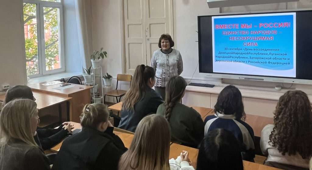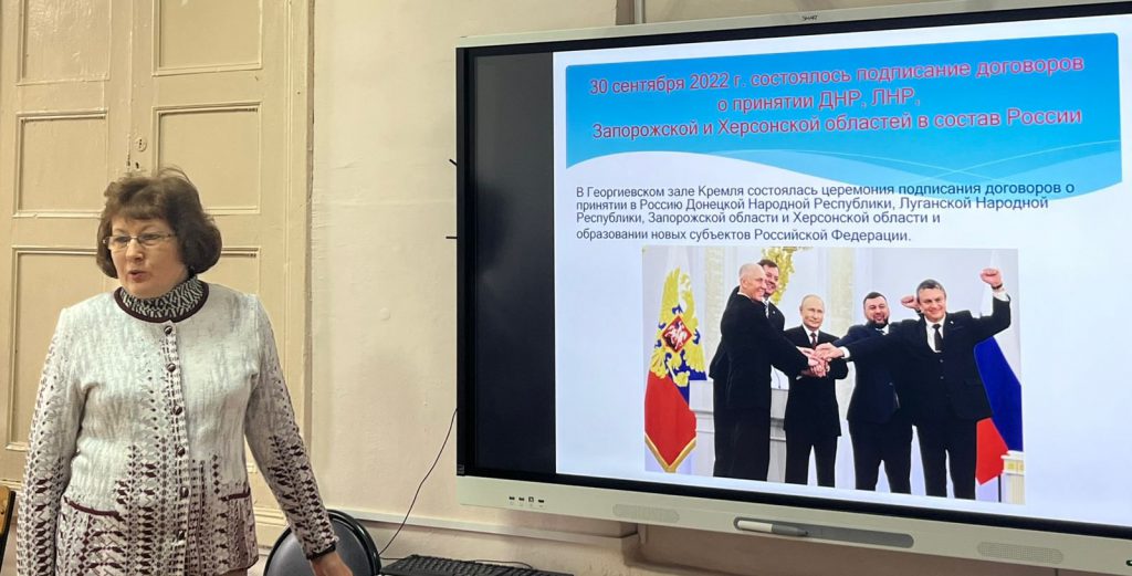Было отмечено, что важным моментом стало событие, когда 30 сентября 2022 года в Георгиевском зале Кремля состоялась церемония подписания договоров о принятии в Россию Донецкой Народной Республики, Луганской Народной Республики, Запорожской и Херсонской областей и образовании новых субъектов Российской Федерации. Госдума приняла закон об установлении памятной даты – Дня воссоединения новых регионов с Россией.