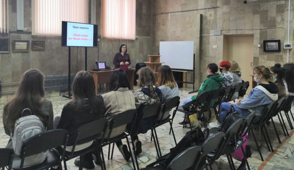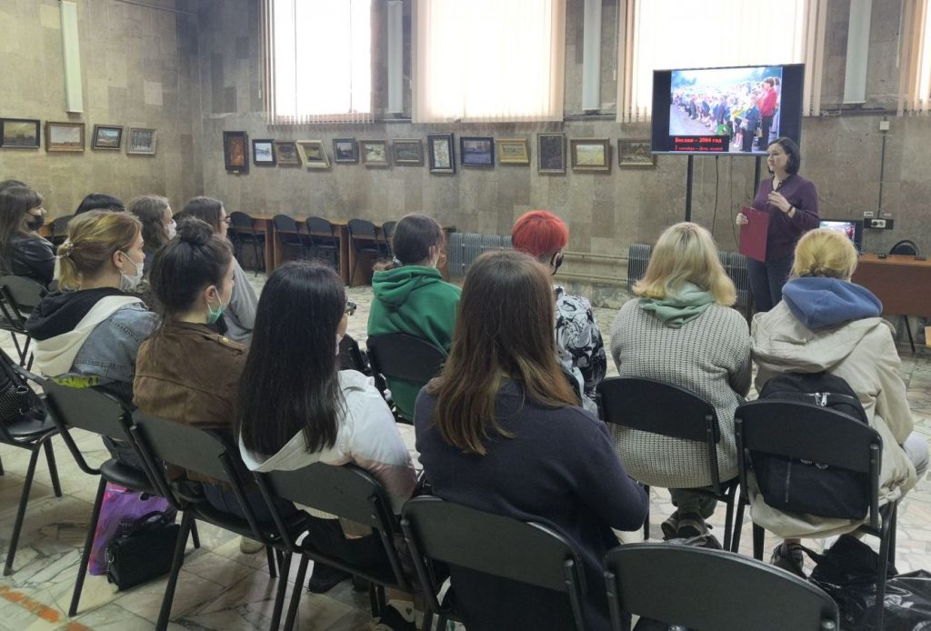 Сотрудники Кузнецкой центральной городской библиотеки им. А.Н. Радищева подготовили для второкурсников Кузнецкого многопрофильного колледжа урок памяти «Ещё вчера мы были живы…». Студенты узнали об основных правилах поведения в условиях угрозы терактов. Особое внимание было уделено страшной трагедии Беслана и необходимости солидарности в борьбе против угрозы терроризма.