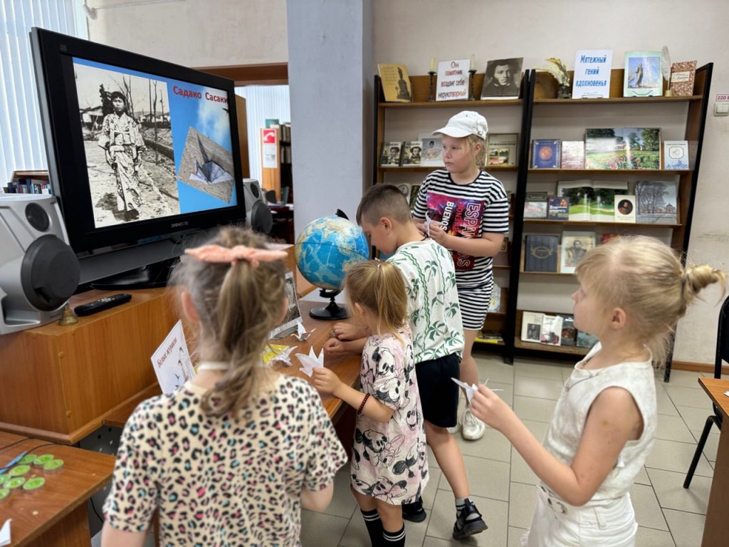 Дети внимательно послушали печальный рассказ. История мужественной девочки, надеявшейся до последнего на чудо их поразила. В память о погибших детях от последствий ядерного взрыва ребята сделали белые бумажные журавлики, как символ будущего без войны.
